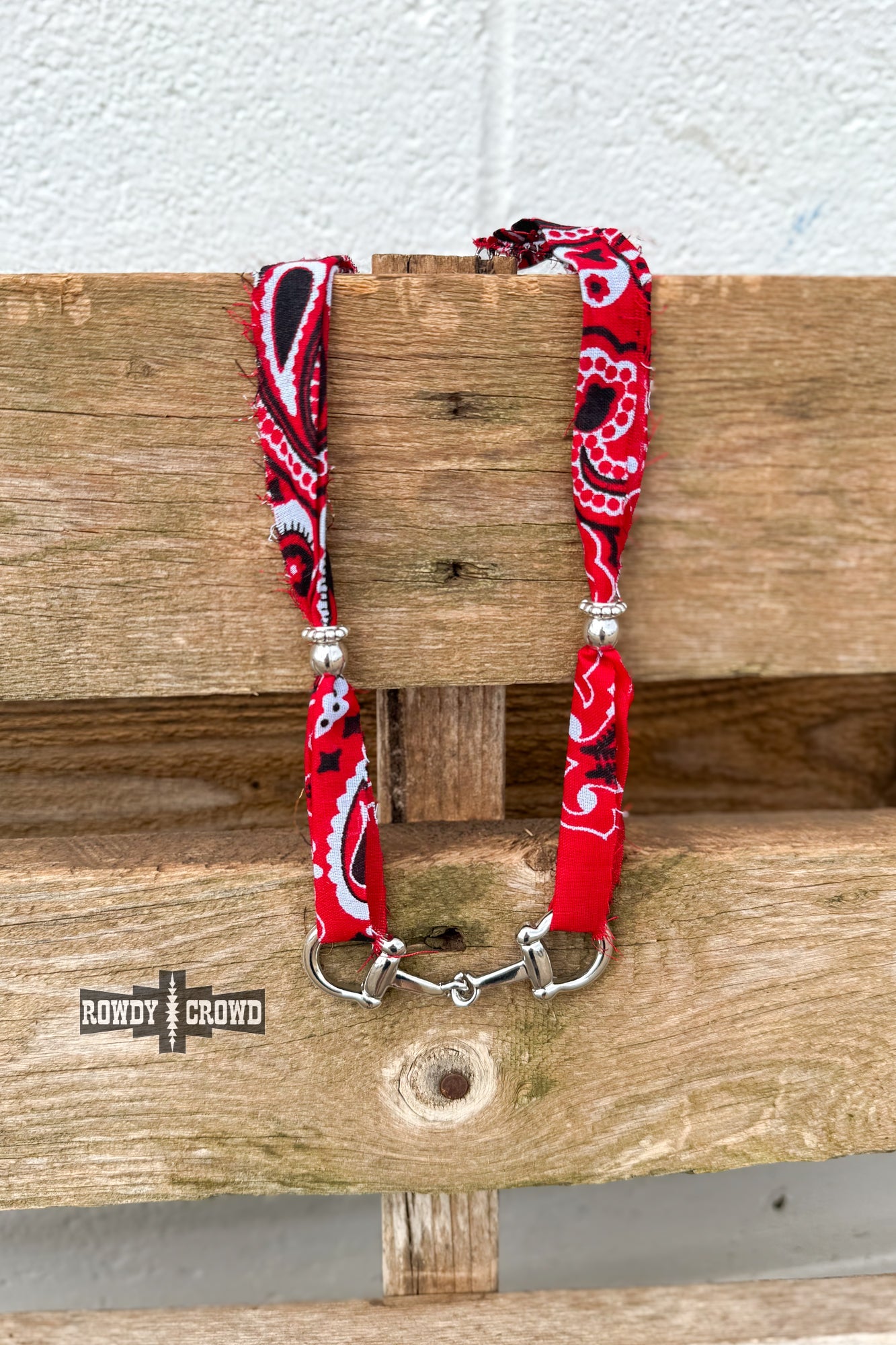 Cowgirl classic with a twist; the Bandana Bit necklace mixes bold western flair with a dash of rowdy charm. The perfect statement for rodeo days or honky tonk nights.